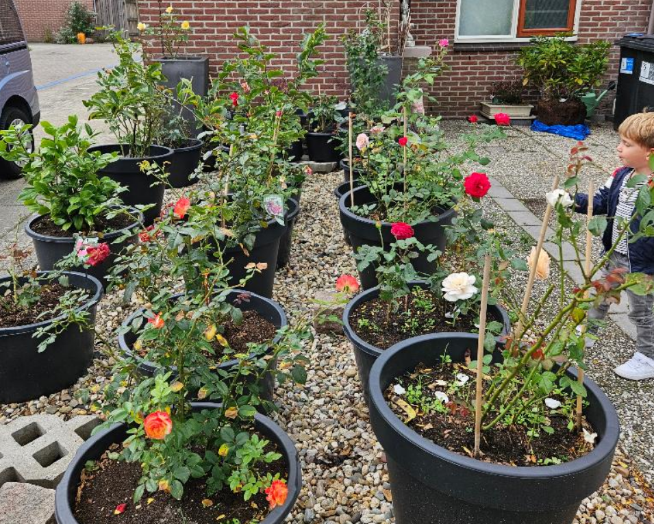 Ook aan de voortuin is hard gewerkt. Het was een mooi gezicht, allemaal bloeiende rozenstruiken.
