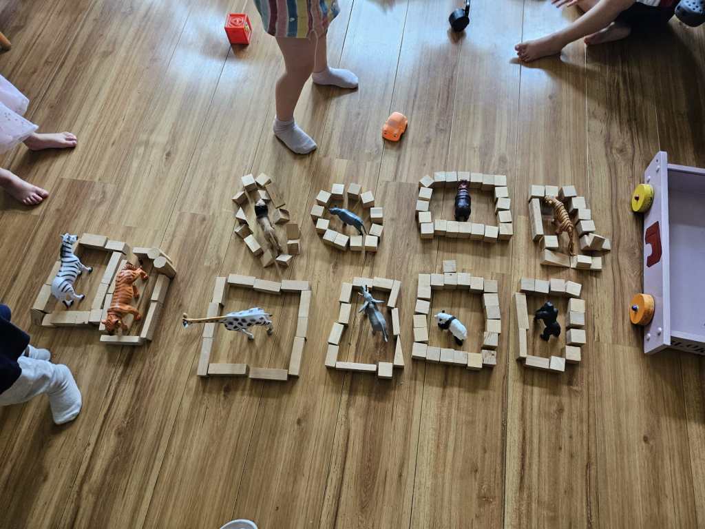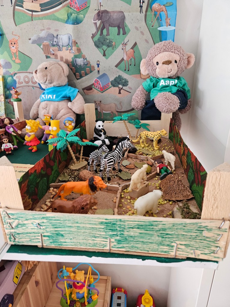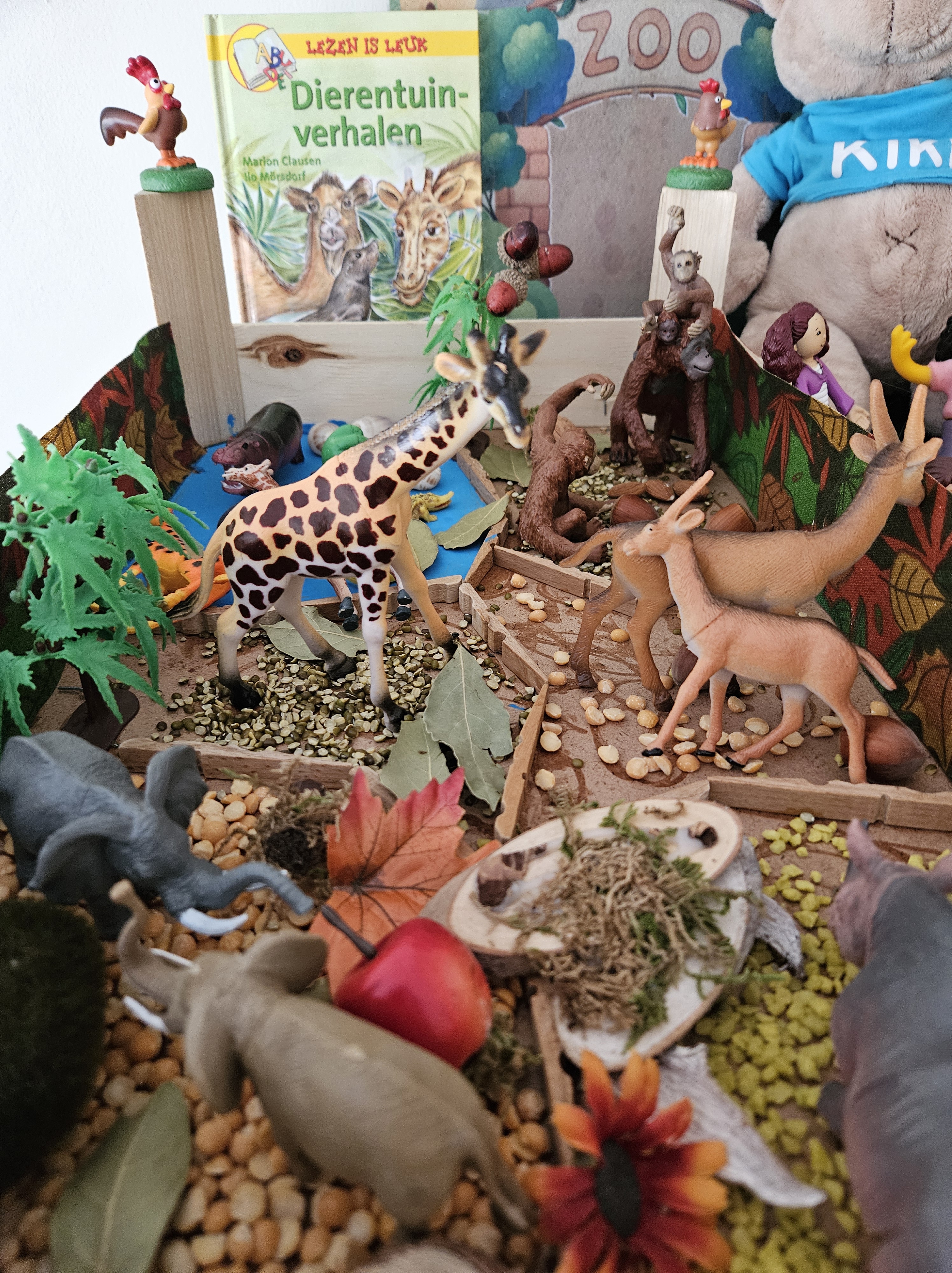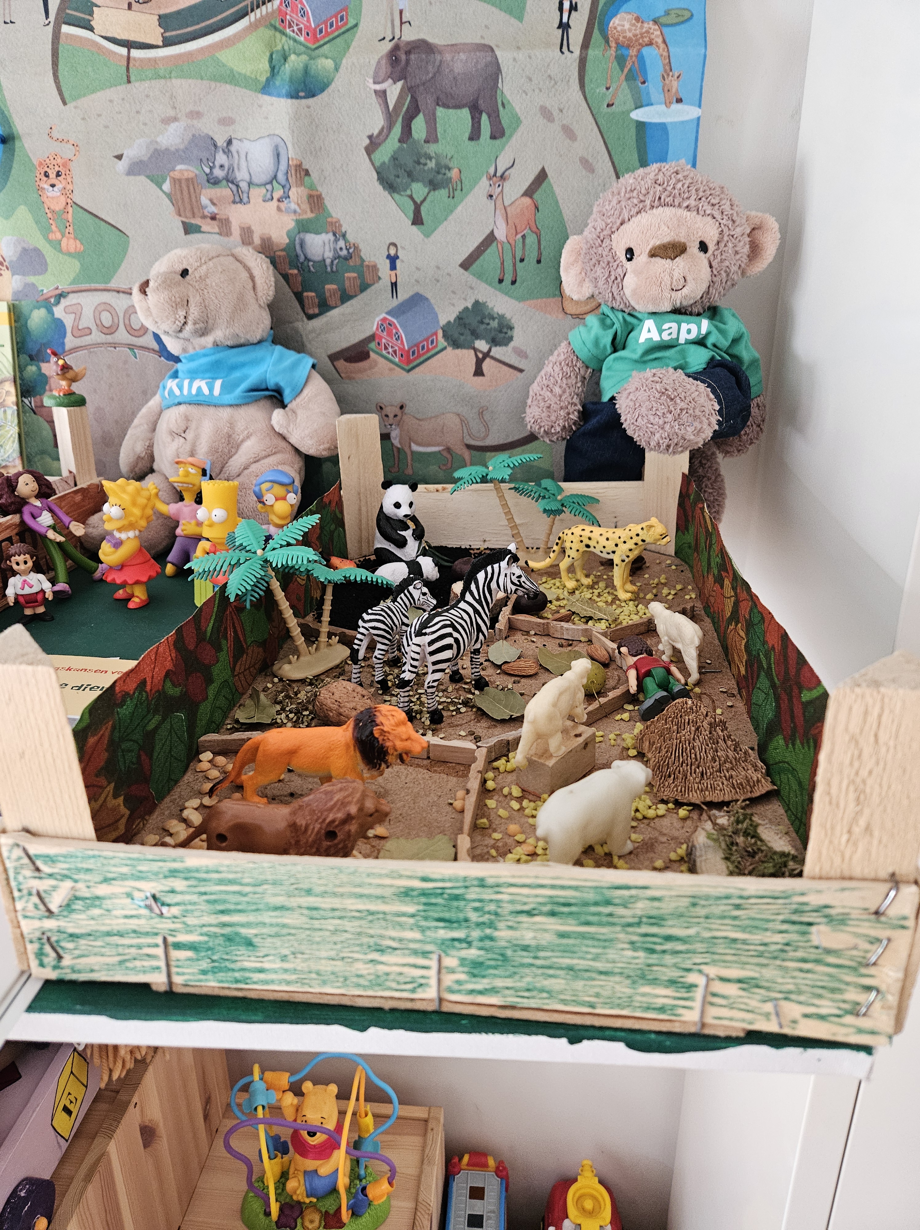 Ze mochten bouwen met blokken. En een dierentuin opzetten met plastic dieren.