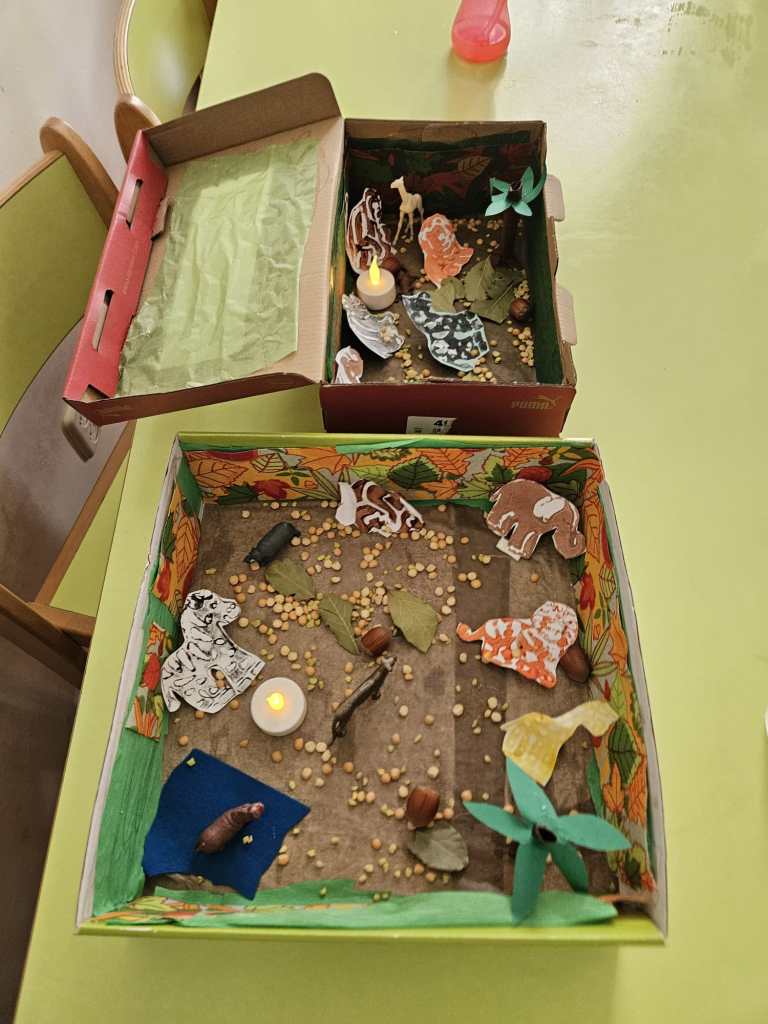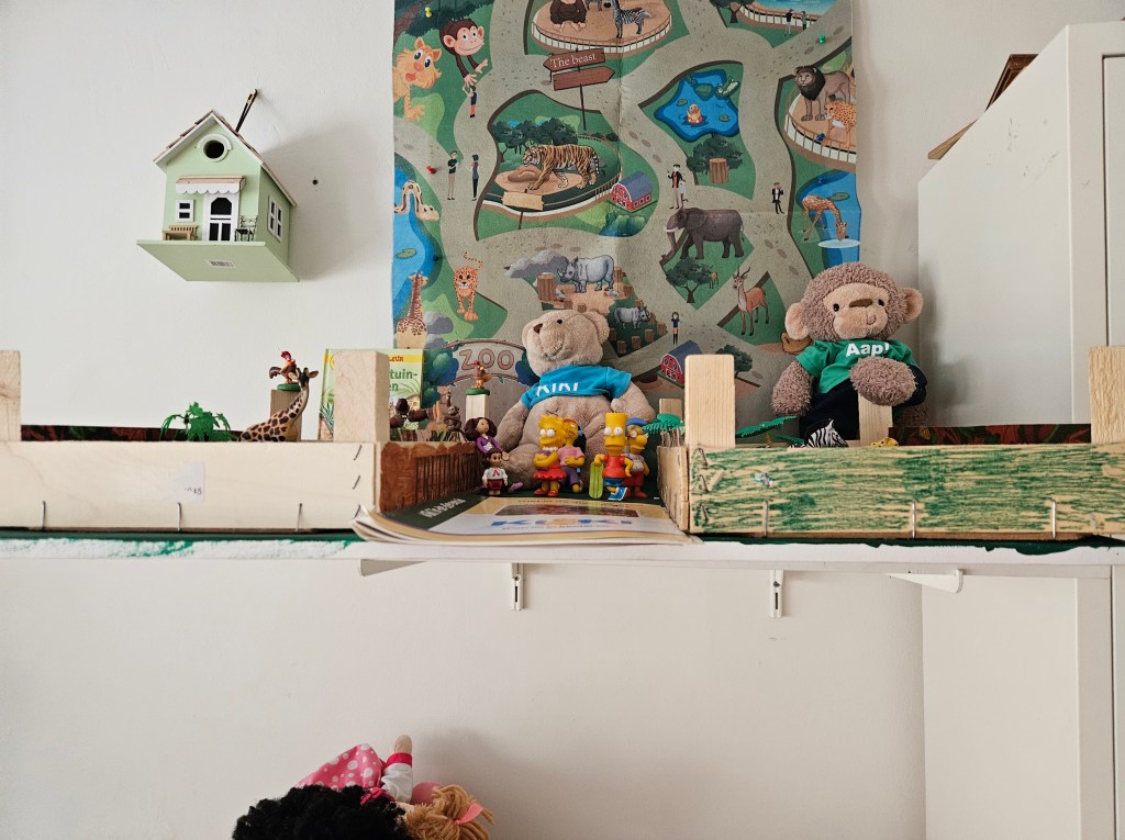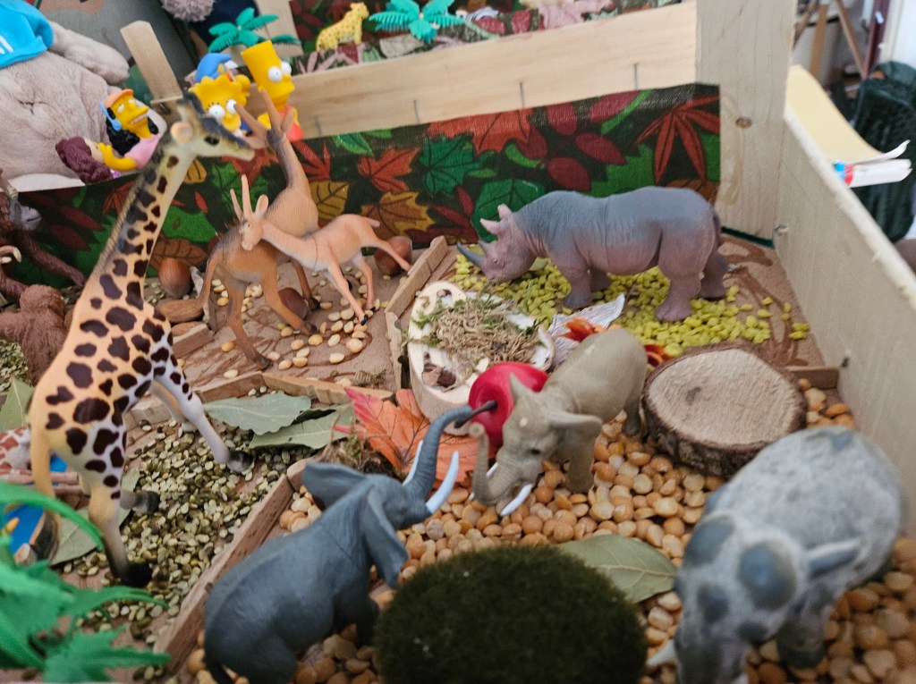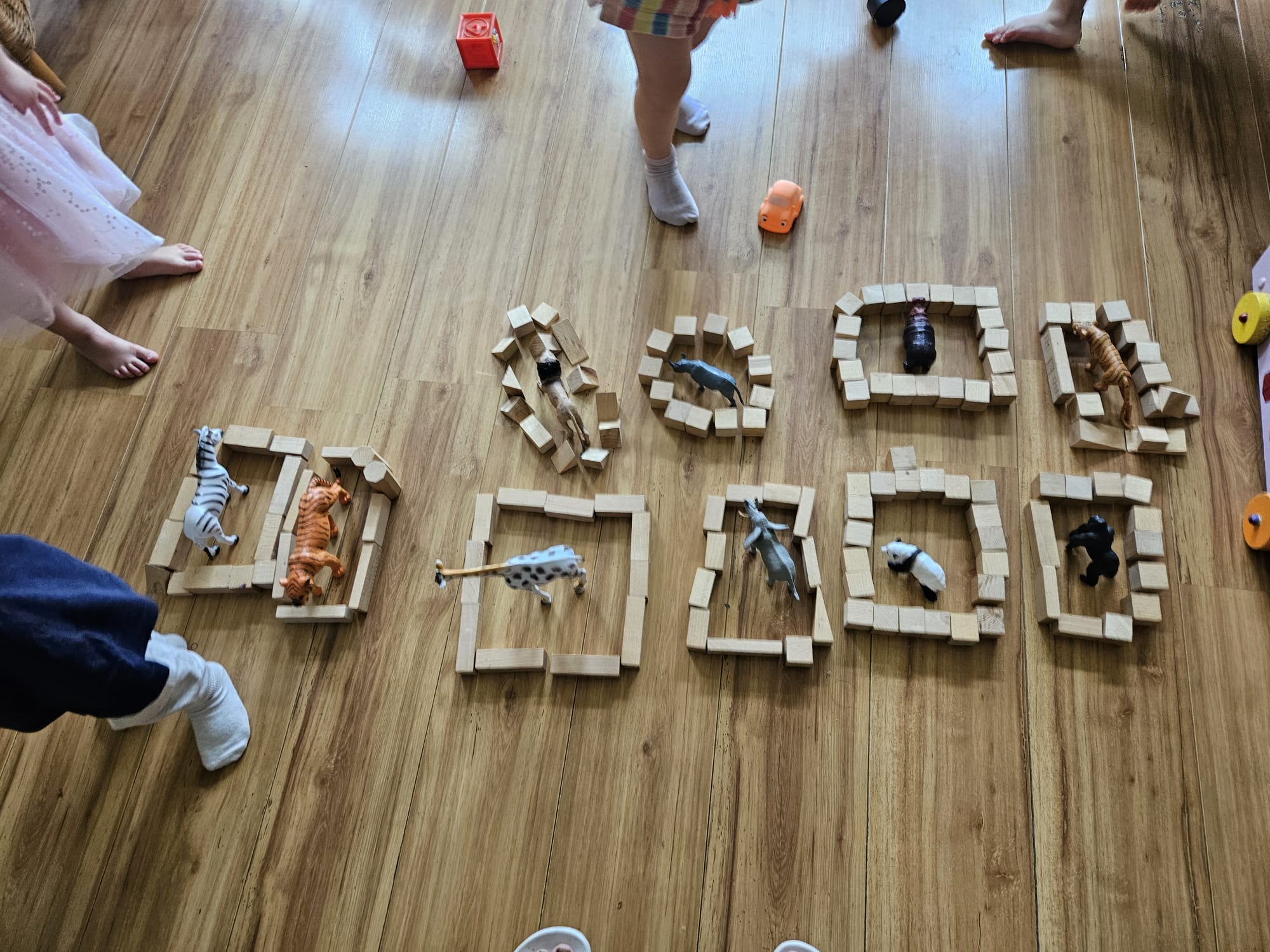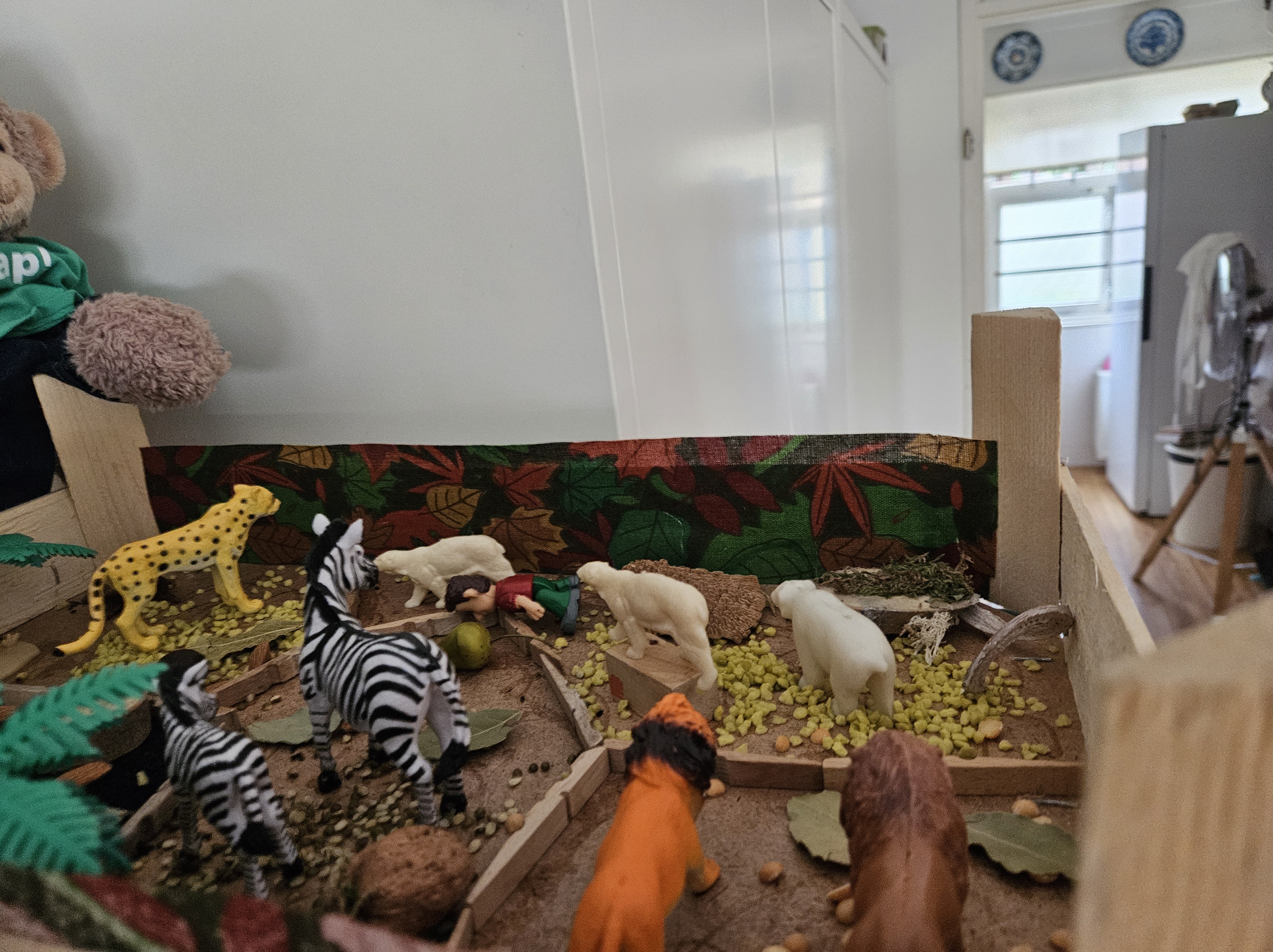 Ze mochten bouwen met blokken. En een dierentuin opzetten met plastic dieren.