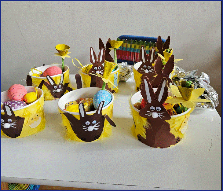Met de kinderen paasmandjes geknutseld en een heerlijk Paasontbijt gehad.